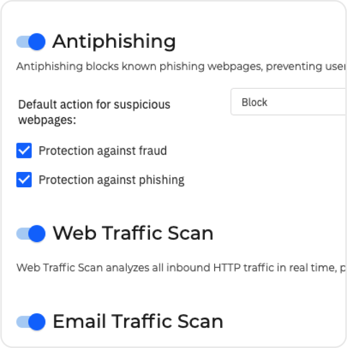 Protección fácil de administrar contra phishing, ransomware y otras amenazas, diseñada específicamente para pequeñas empresas que desean disfrutar de seguridad de nivel empresarial con una inversión asequible.